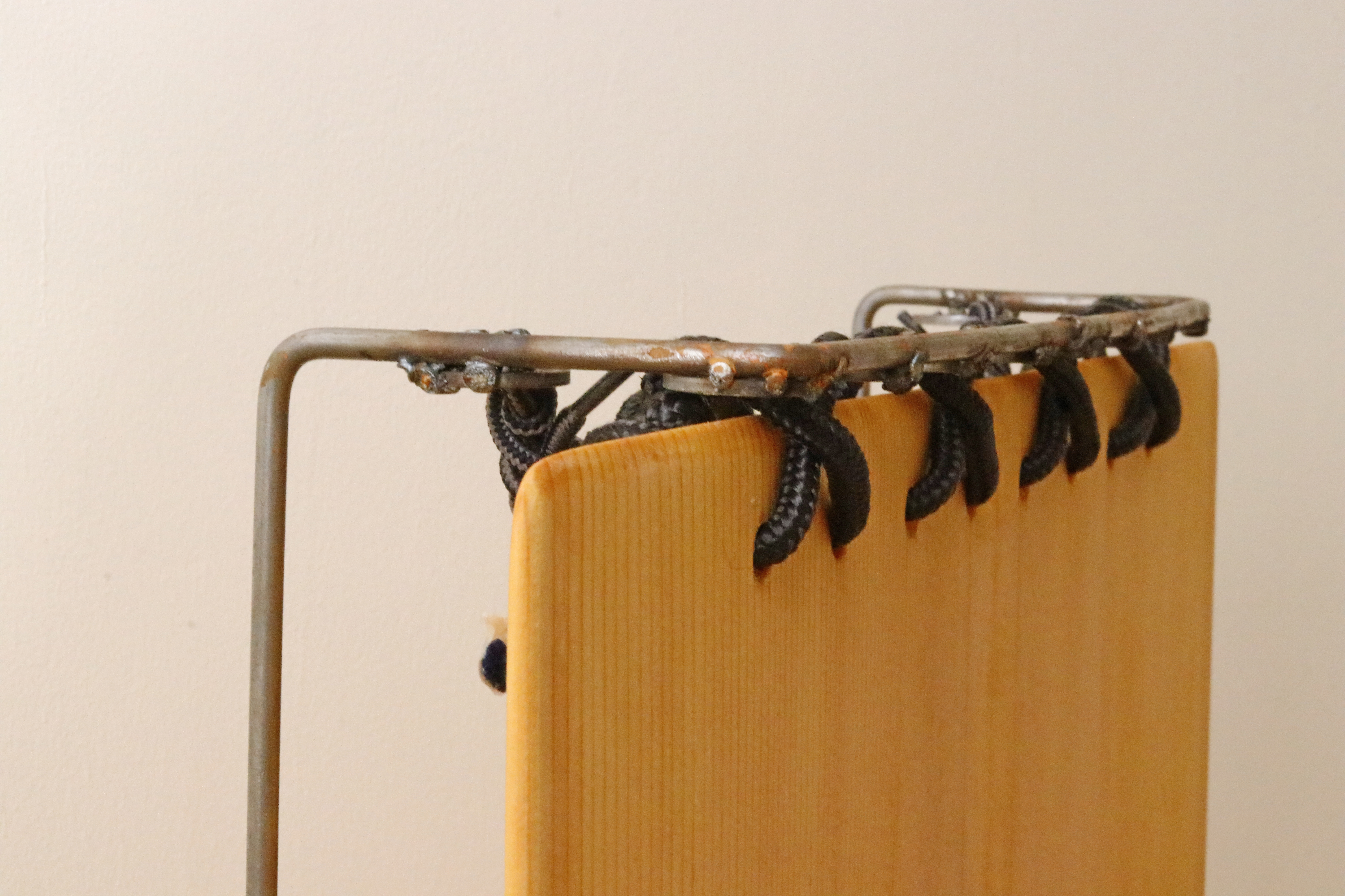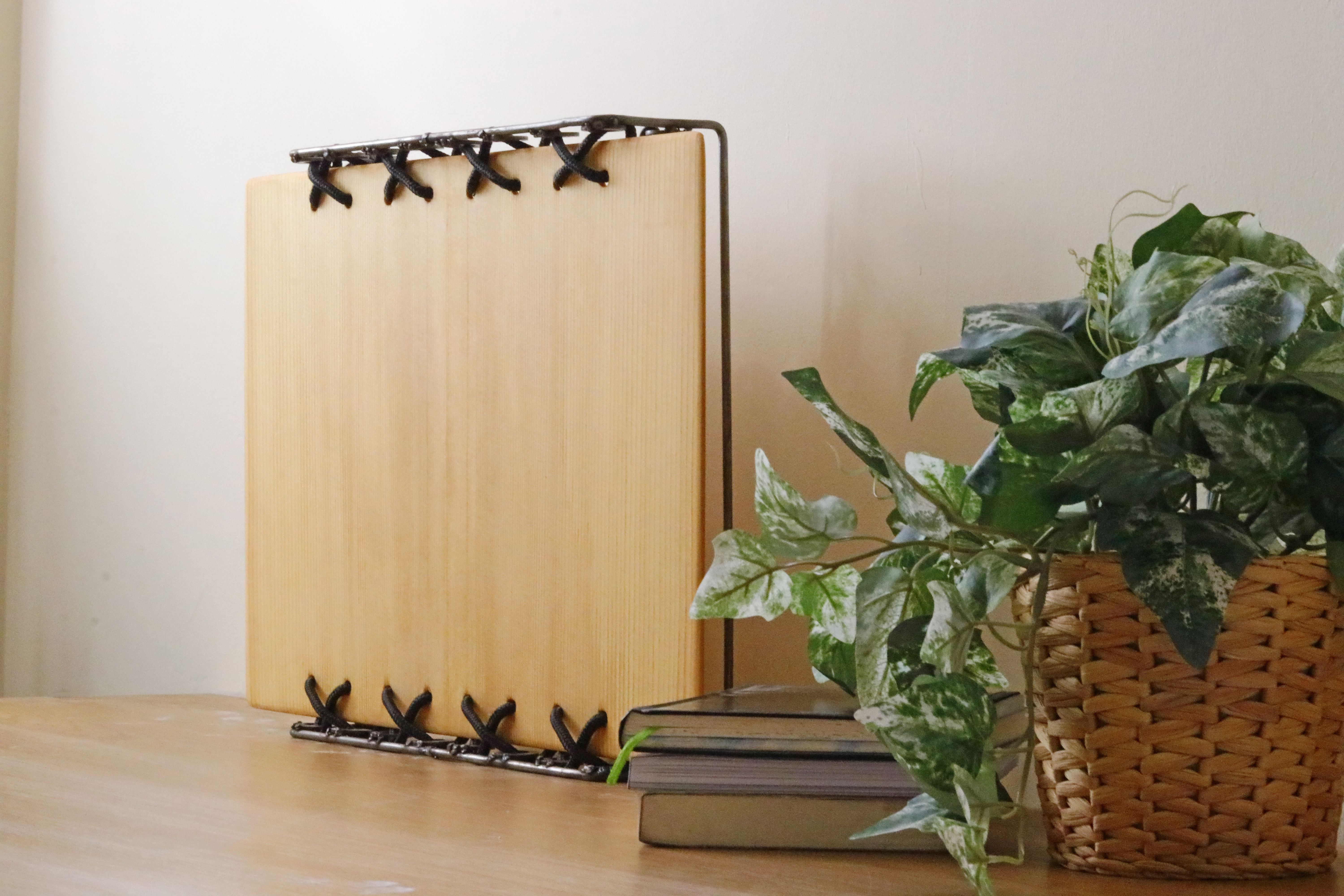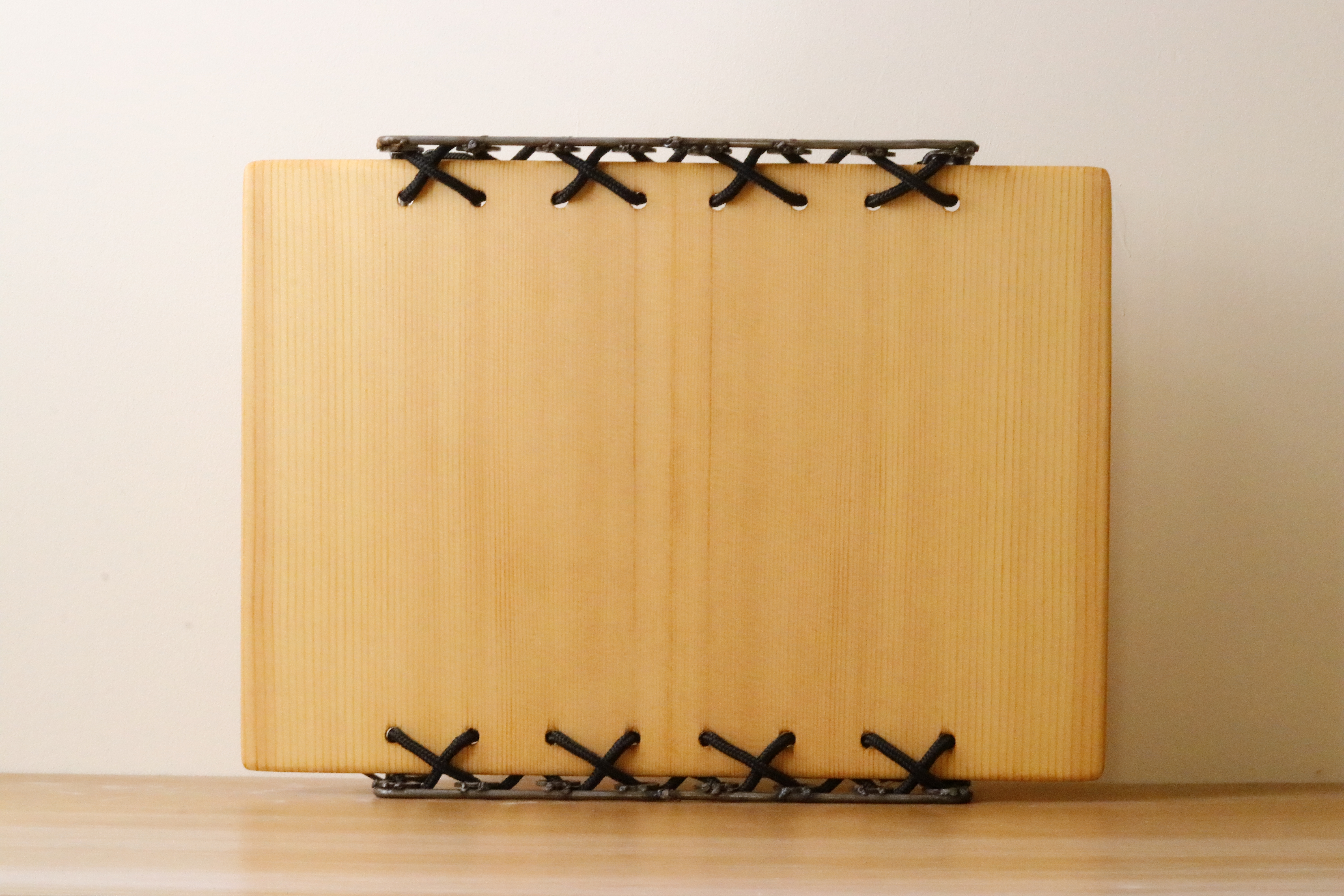 A distributed mode loudspeaker has a uniform output band and a near omni-directional angle of output. This allows the speaker to emit sound all throughout a space, effectively filling it without the tendency to favour certain directions. The speaker design itself has a thin profile, due to the compact nature of the hardware. Suspending thusly all but eliminates severe losses to audio output. When placed on its back, the soundboard becomes a surface to explore the vibrations of sound.